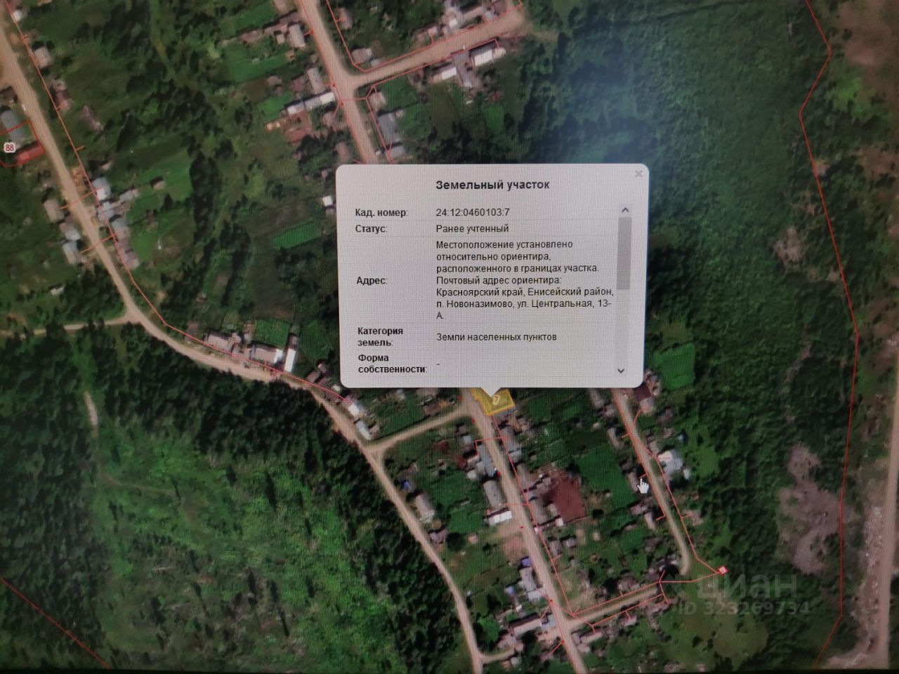 Земельный участок, расположенный по адресу: местоположение установлено относительно ориентира, расположенного в границах участка. Почтовый адрес ориентира: Красноярский край, Енисейский район, п. Новоназимово ул. Центральная, 13-А, общей площадью 535 кв.м., кадастровый номер 24:12:0460103:7, категория земель: "Земли населенных пунктов", разрешенное использование: для размещения и эксплуатации торгового павильона.