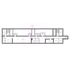 Два входа с противоположных торцов здания