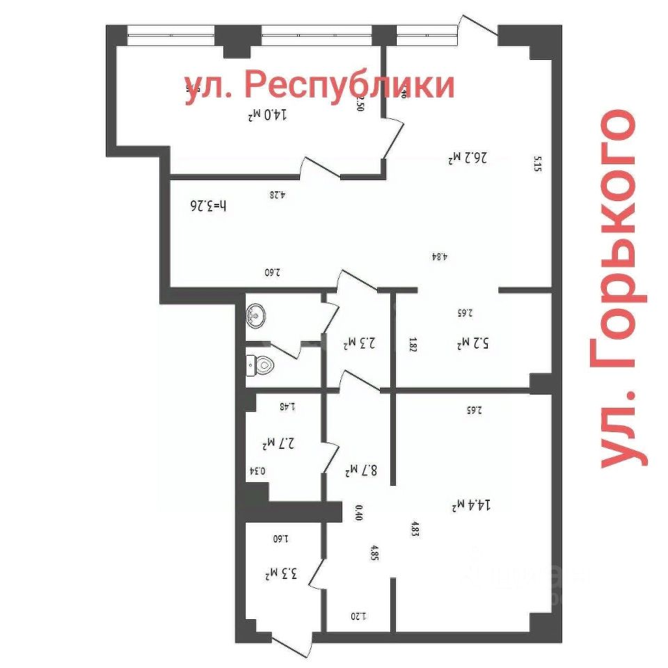 Сдам в аренду на долгий срок помещение 76,6 кв.м с 2 мя витринными окнами и высокими потолками 3,9 метра в Центре города на первой линии ! 2 входа!