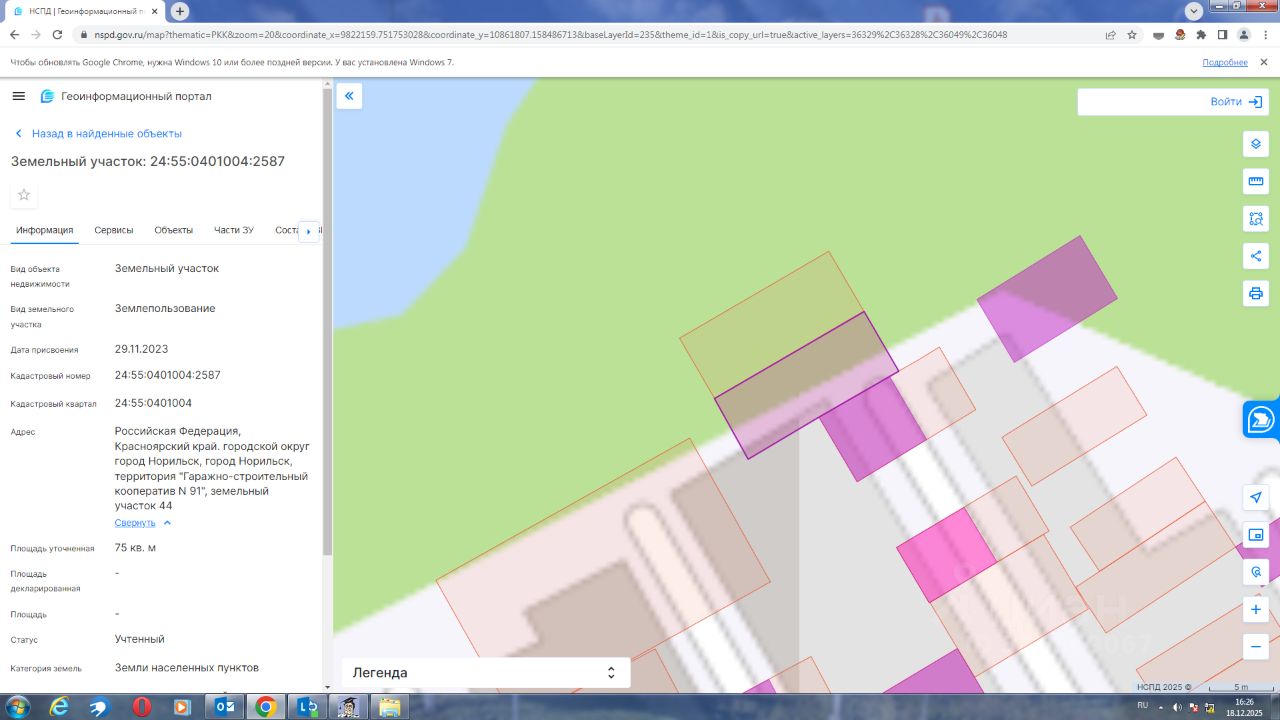 Земельный участок с кадастровым номером 24:55:0401004:2587 площадь 75 по адресу Российская Федерация, Красноярский край. городской округ город Норильск, город Норильск, территория "Гаражно-строительный кооператив N 91", земельный участок 44
