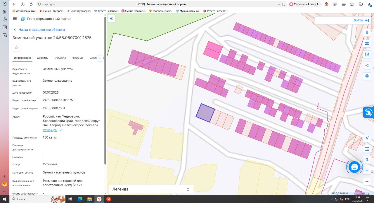 Земельный участок с кадастровым номером 24:58:0807001:1575, площадь 150 кв. м., земли населенных пунктов, местоположение: Российская Федерация, Красноярский край, городской округ ЗАТО город Железногорск, поселок Подгорный, территория ГСК 8А Полевая, земельный участок 15
