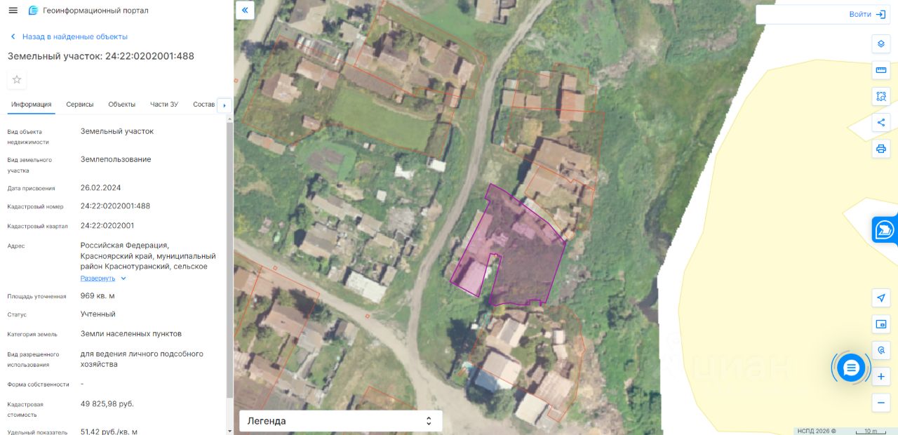 Земельный участок из категории земель земли населенных пунктов, с кадастровым номером 24:22:0202001:488, общей площадью 969 кв.м., расположенный по адресу: Российская Федерация, Красноярский край, Краснотуранский муниципальный район, сельское поселение Восточенский сельсовет, Диссос деревня, Центральная улица, земельный участок 1 "б", с разрешенным использованием для ведения личного подсобного хозяйства, сроком на 20 лет. Начальная стоимость права аренды земельного участка составляет 1800,00 (Одна тысяча восемьсот) рублей 00 коп., в год.
