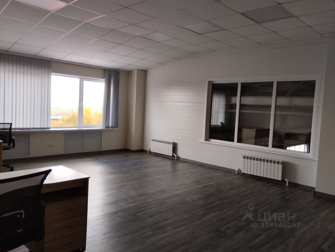 На втором этаже здания большое офисное помещение с просторными кабинетами, ресепшеном, с мебелью. Так же имеется кухня, холодильник, СВЧ.