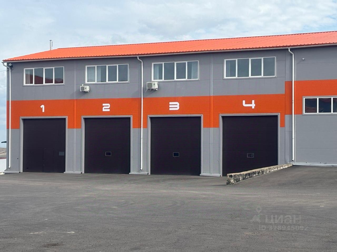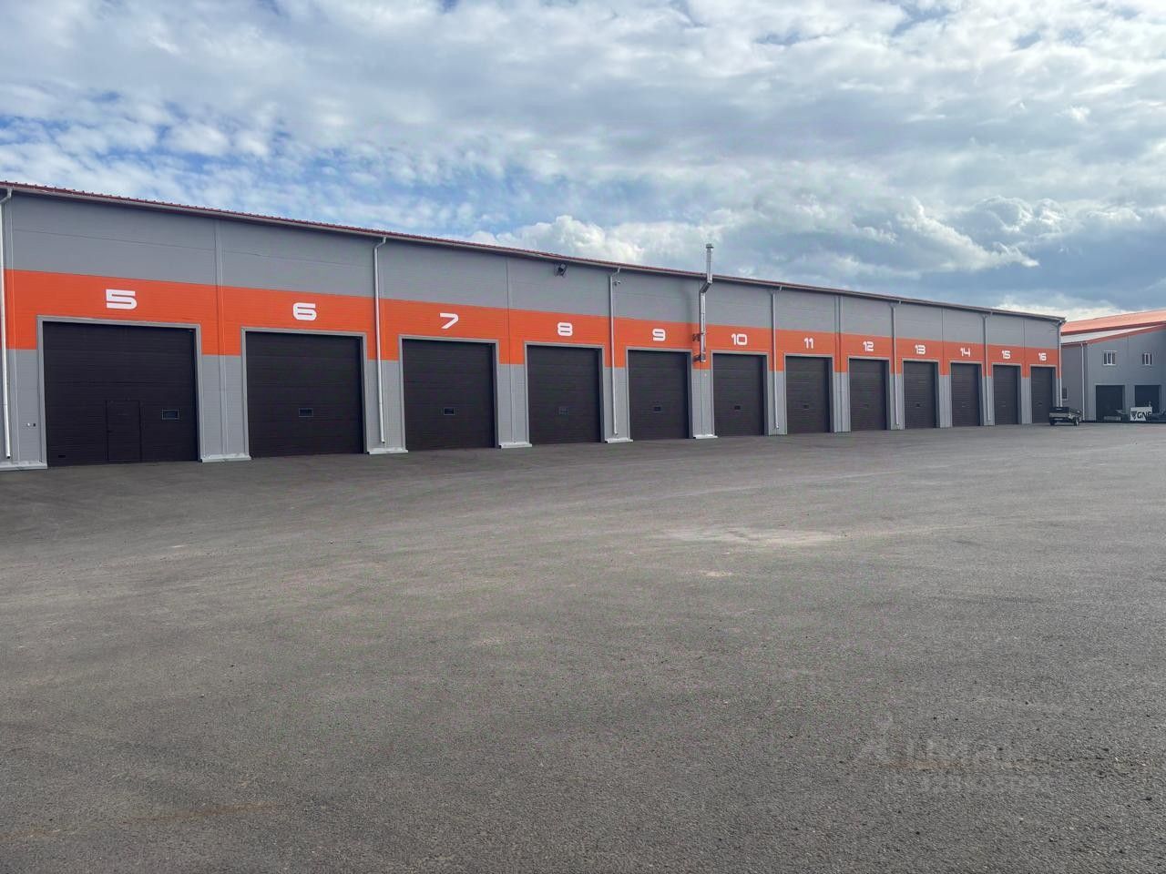 На территории парковка для грузовых авто.