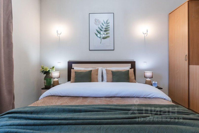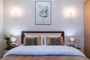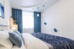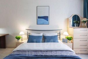 - В двух раздельных спальнях двуспальные кровати с ортопедическими матрасами. Предусмотрены прикроватные тумбы со светильниками. Обстановка комфорта и уюта позволит прекрасно выспаться на белоснежном белье из натуральных тканей. В одной из спален есть телевизор, шкаф для хранения вещей. Во второй спальне организовано рабочее место-письменный стол с лампой, стул. Есть также туалетный столик с комодом и настенным зеркалом.
