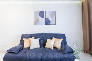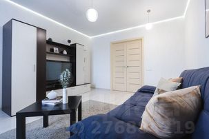 - В большой гостиной диван, который легко трансформируется в удобное двуспальное место. ЖК-телевизор с внушительной диагональю поможет провести досуг. Вещи можно расположить в ТВ-стенке. Для абсолютного удобства и уюта есть журнальный стол и ковер.