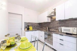 - Просторная кухня оснащена современным модным гарнитуром со всей необходимой для длительного проживания бытовой техникой. В наличии полный комплект посуды и кухонной утвари для приготовления пищи по своему вкусу. Уютная обеденная зона гарантирует гостям душевную трапезу.