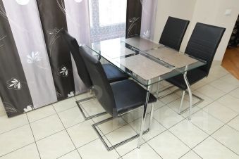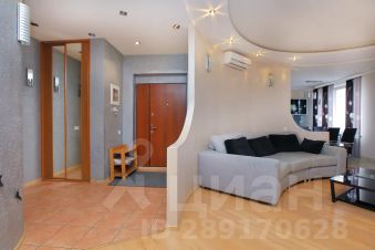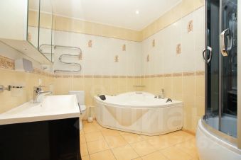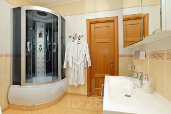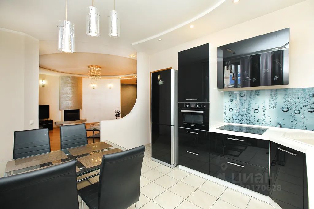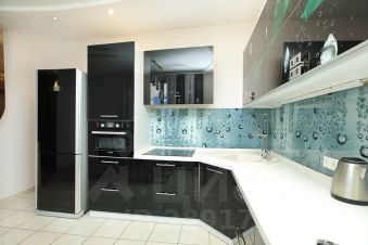 В квартире ультрасовременная оснащенная кухня, объединённая с просторной гостиной. В ней можно выделить электрокамин, шикарные люстры и шторы декоративные шторы, прекрасно дополняющие интерьер. Прямо в квартире есть инфракрасная сауна, где можно расслабиться и отдохнуть после активного трудового дня. Просторные спальни, 2 санузла, душевая и большая ванна.