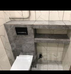 установлен унитаз,ванная.