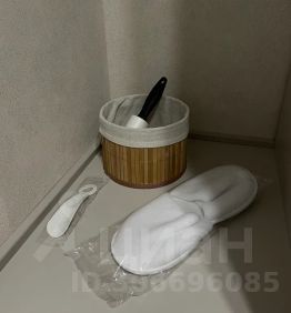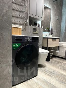 Расположена стиральная машина с сушкой и воздушной стиркой, зеркало с подсветкой и подогревом, водонагреватель, фен, сушилка, индивидуальные туалетные принадлежности, халаты, тапочки