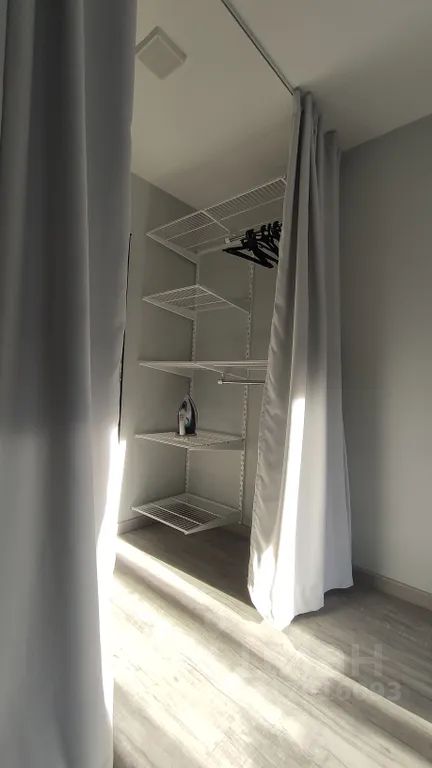 - Современная гардеробная с высоким зеркалом;