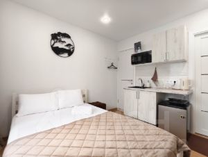 Вход в апартаменты БЕСКОНТАКТНЫЙ по кодовому замку— это очень удобно! Вам не нужно никого ждать, заселиться можно в любое время.