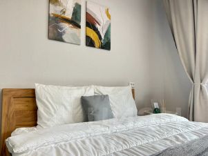 Современная мебель, двуспальная кровать, плита, микроволновая печь, чайник, холодильник, телевизор, бесплатный wi-fi, фен, утюг, гладильная доска, сушка для белья, полный комплект посуды для приготовления и приёма еды, шампунь, гель для душа, мыло.