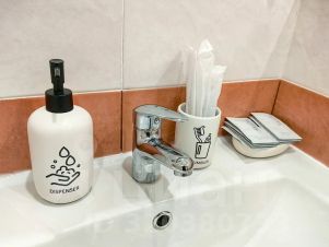 — средства гигиены в индивидуальных упаковках: жидкое мыло, зубные щетки и зубные пасты, бритвенный набор, шампунь, гель для душа, одноразовая расческа, швейный набор, косметический набор (ватные диски и палочки), ролики для одежды, туалетная бумага.