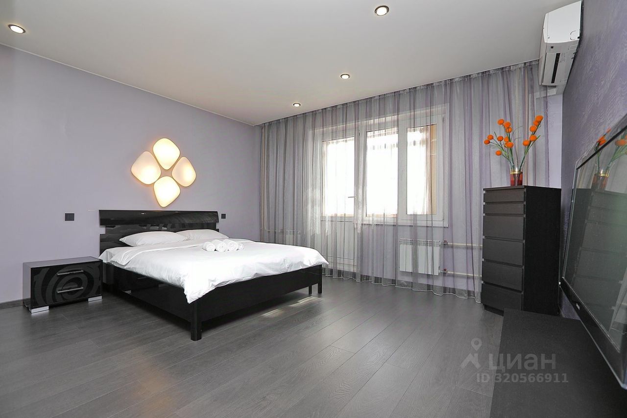 В квартире - двуспальная кровать, кондиционер, телевизор, утюг, фен, плита, стиральная машина.