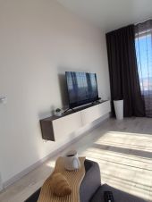 Сдаётся уютная двухкомнатная квартира на 20 этаже современного дома с лифтом. Залог составляет 2000 рублей. Курение и размещение с животными не допускаются, но можно с детьми. В квартире предусмотрено бесконтактное заселение. Интерьер выполнен в светлых тонах, что создаёт атмосферу уюта и комфорта. Просторная гостиная оборудована удобным угловым диваном и телевизором с подключенным Wi-Fi. Из окон открывается приятный вид на улицу. Кухня оснащена всем необходимым: есть холодильник, плита, микроволновая печь и чайник. В ванной комнате установлена стиральная машина и современная сантехника. Спальня оформлена в спокойных тонах, оборудована двуспальной кроватью и вместительным шкафом.