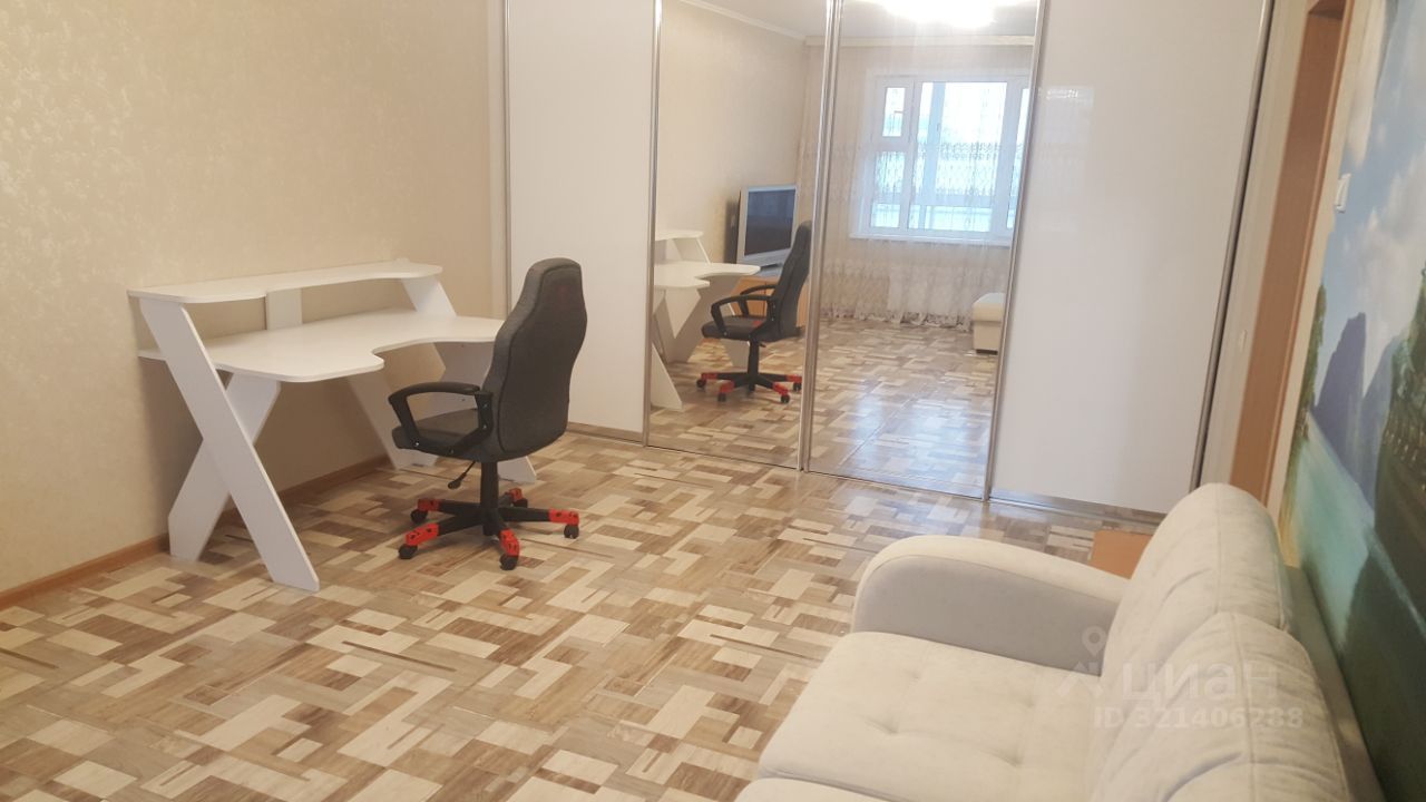 Уютная светлая меблированная квартира в тихом, чистом спальном районе. Солнечная сторона. Недавно сделан ремонт. В просторной комнате (5х4м) большой шкаф-купе, диван-кровать с прикроватной тумбочкой, компьютерные стол и кресло, телевизор с тумбой. На кухне (3х3м) новый вместительный гарнитур с вытяжкой и посудой, стол со стульями и табуретками, электроплита, духовка, микроволновка, холодильник, чайник. В комнате и на кухне диодные светильники. В ванной есть стиральная машина. Из кухни выход на большой застеклённый балкон (6,5х1м) с красивым видом. Есть домофон, интернет, подключено кабельное ТВ. Рядом с домом расположены парк "Солнечная поляна", гипермаркет "Аллея" и др. магазины, аптека, остановка автобуса. Возле дома детская и спортивная площадки, много парковочных мест.
