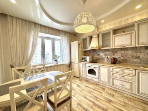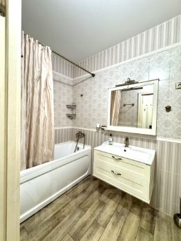 Просторная комната с выходом на балкон. Кухня 12м. Ванная комната и большая прихожая. Все обставлено необходимой мебелью и бытовой техникой. Ремонт в прованском стиле из очень качественных материалов сделает вашу жизнь красивой и комфортной.