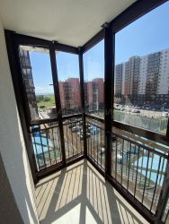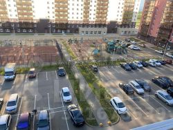 Окна выходят во двор, большая парковка, детская и спортивная площадка.