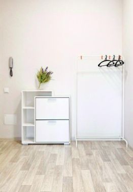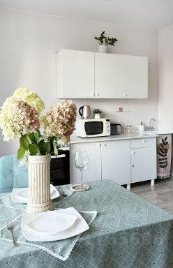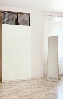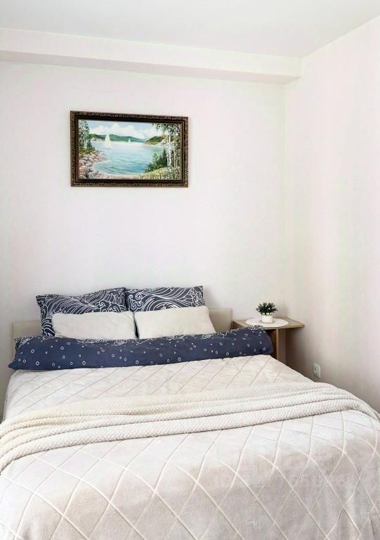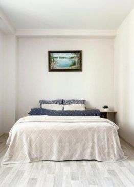 Квартира состоит из совмещенной кухни-гостиной, спальни и коридора. Вместимость — до 4 человек.