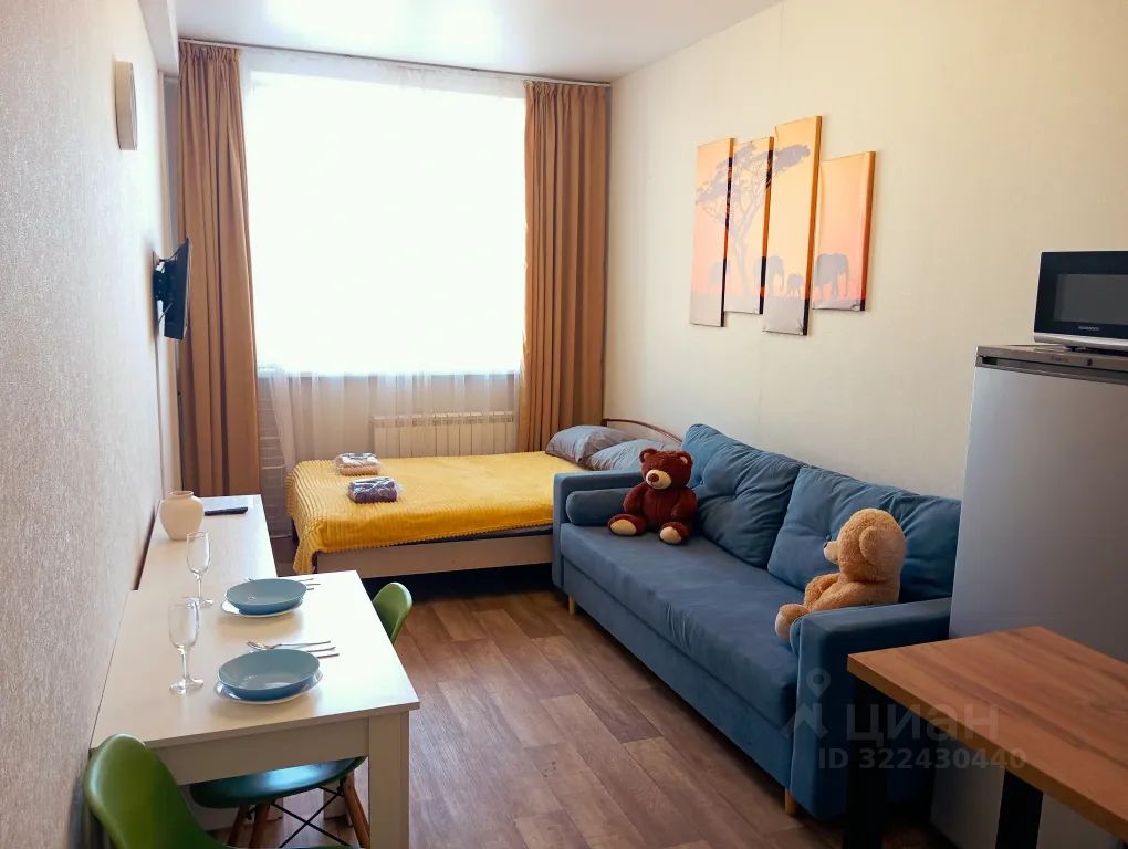 Квартира студия с новым ремонтом и новой мебелью может разместить до 4 гостей.
