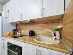 Квартира подойдет для 4 гостей. В апартаментах есть всё для комфортного проживания: двуспальная кровать, раскладной диван, ЖК телевизор, кабельное ТВ, Wi-Fi безлимитный, полотенца, постельные принадлежности, стиральная машина, микроволновая печь, варочная панель, духовой шкаф, чайник, столовые приборы, посуда, кастрюля, сковородка, фен, утюг, гладильная доска.