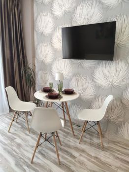 Студия с современным ремонтом и новой мебелью предлагает комфортное пребывание для 4 гостей.