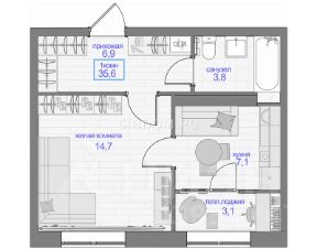 В квартире сделан косметический ремонт, что создает приятную атмосферу для жизни. Комната обставлена мебелью, в наличии все необходимое для комфортного проживания. Из техники есть кондиционер, холодильник и стиральная машина. Санузел совмещённый, оборудован ванной. На кухне достаточно места для готовки и приёма пищи. Есть лоджия для хранения или отдыха на свежем воздухе.
