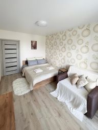 В квартире есть все необходимое для комфортного проживания: холодильник, телевизор, электрический чайник, утюг, микроволновая печь, водонагреватель, стиральная машина автомат, посуда, чистое постельное бельё, полотенца, ТВ, бесплатный WiFi. Имеется два спальных места: двуспальная кровать и диван.