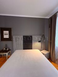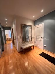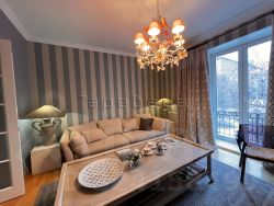 Просторная прихожая с гардеробной, гостиная с французским окном и выходом на балкон, две спальни, квадратная кухня 10 кв.м и раздельный санузел. Высота потолков 3 метра. Окна выходят на две стороны.