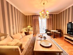 Укомплектована хорошей дорогостоящей мебелью и техникой. В квартире все продумано до мелочей.