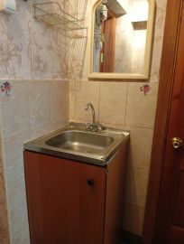 В квартире находится всё что на фото(холодильник, стиральная машина автомат, диван, телевизор, плитка). Сан.узел совмещён, душ слив в пол.