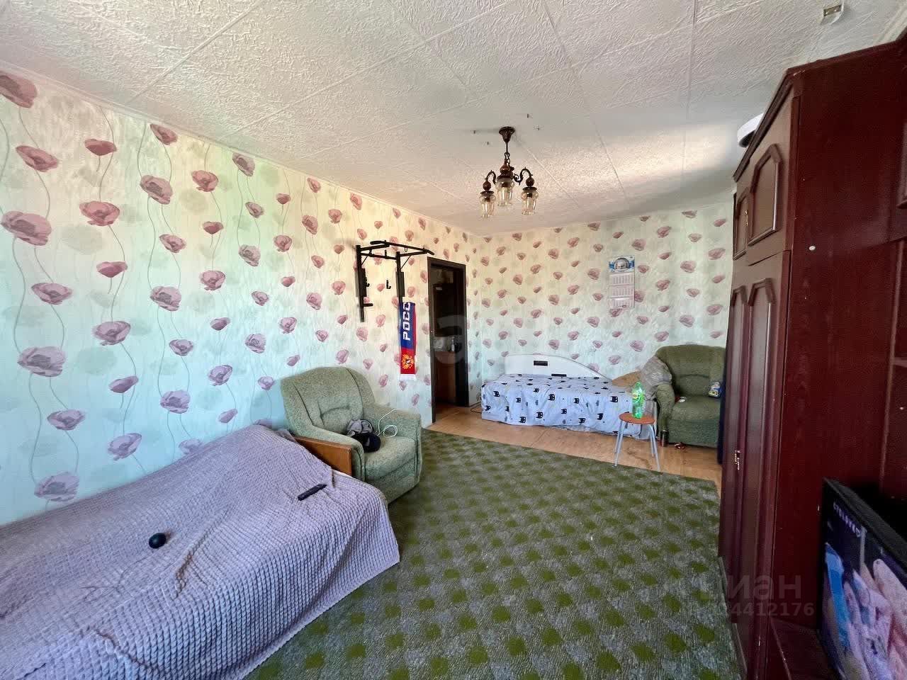 В квартире выполнен косметический ремонт: потолки окрашены, стены украшены обоями, создающими приятную атмосферу. Пол покрыт надежным линолеумом, а также есть мягкие ковры, добавляющие уюта. В наличии есть все необходимое для комфортного проживания — просторный диван для отдыха и кровать для сна.