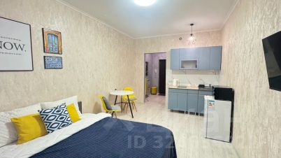 Вся необходимая техника: чайник, холодильник, СВЧ-печь, плита, стиральная машинка, утюг, фен, телевизор со Smart TV, беспроводной интернет.