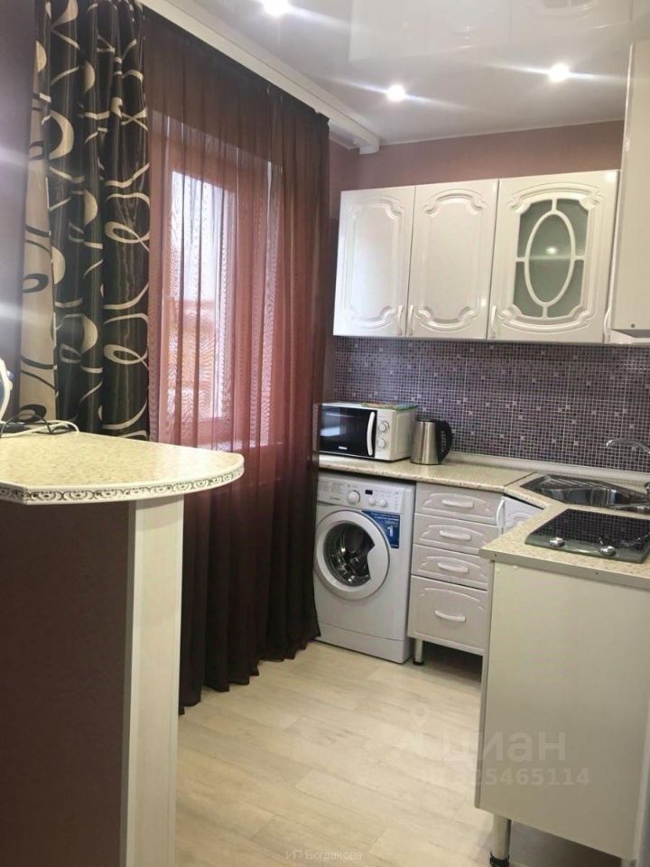 Однокомнатная квартира. Оснащена всем необходимым для комфортного проживания: кровать, телевизор, кресло, шкаф, микроволновая печь, плита, посуда.