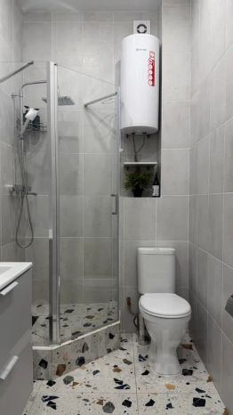 В ванной комнате для гостей: одноразовые зубные щетки с нанесённой зубной пастой, мыло, шампунь и гель для душа, ватные диски и палочки, туалетная бумага, фен, полотенца. Есть стиральная машинка и стиральный порошок. Утюг, гладильная доска и сушилка. В период отключения горячей воды, работает бойлер.