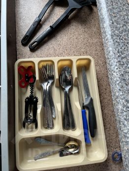 На кухне есть посуда, электроприборы,варочная поверхность стеклокерамика для быстрого приготовления пищи. Утюг, гладильная доска, сушилка.
