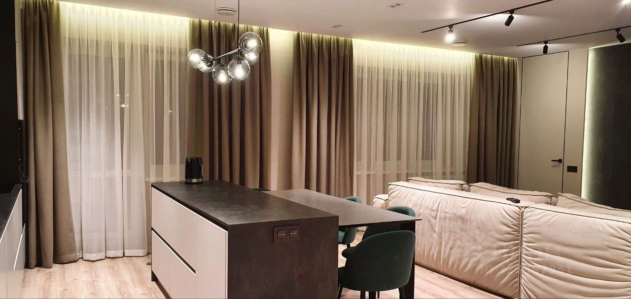 Сдается просторная трехкомнатная квартира в лучшем по расположению доме Южного Берега. Общая площадь квартиры составляет 93 кв. м, сделана грамотная перепланировка, которая включает в себя 2 изолированных комнаты, просторную гостиную с островом, кабинет, гардеробную, технический шкаф для стиральной машины. Квартира полностью мебелированна встроенной мебелью. Окна и балкон выходят во двор, в детской на улицу. Квартира с дизайнерским ремонтом, в которой продумана каждая деталь для вашего комфорта: теплой пол в санузлах, приточно-вытяжная система вентиляции с системой фильтрации воздуха и возможностью регулировки температуры, система умный дом для управления освещением и вентиляцией. В наличии вся необходимая техника: холодильник Liebherr, морозильник Bosch, посудомоечная машина Electrolux, телевизор LG 4К 65 дюймов, стиральная машина Samsung, бойлер Gorenie. В квартире два совмещенных санузла, один из которых оборудован ванной, а другой — душевой в строительном исполнении. Душевые системы оснащены термостатом.На балконе можно наслаждаться утренним кофе или вечерним отдыхом, есть освещение и напольное покрытие.