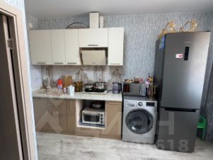 Просторная кухня оборудована необходимой бытовой техникой, включая холодильник и стиральную машину. В комнате установлен вместительный шкаф-купе.