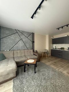 Квартира выполнена в дизайнерском стиле, что создаёт атмосферу уюта и комфорта. В комнате есть вся необходимая мебель. В кухне и ванной комнате установлена современная техника: холодильник, телевизор и стиральная машина. Санузел совмещённый и оборудован ванной.