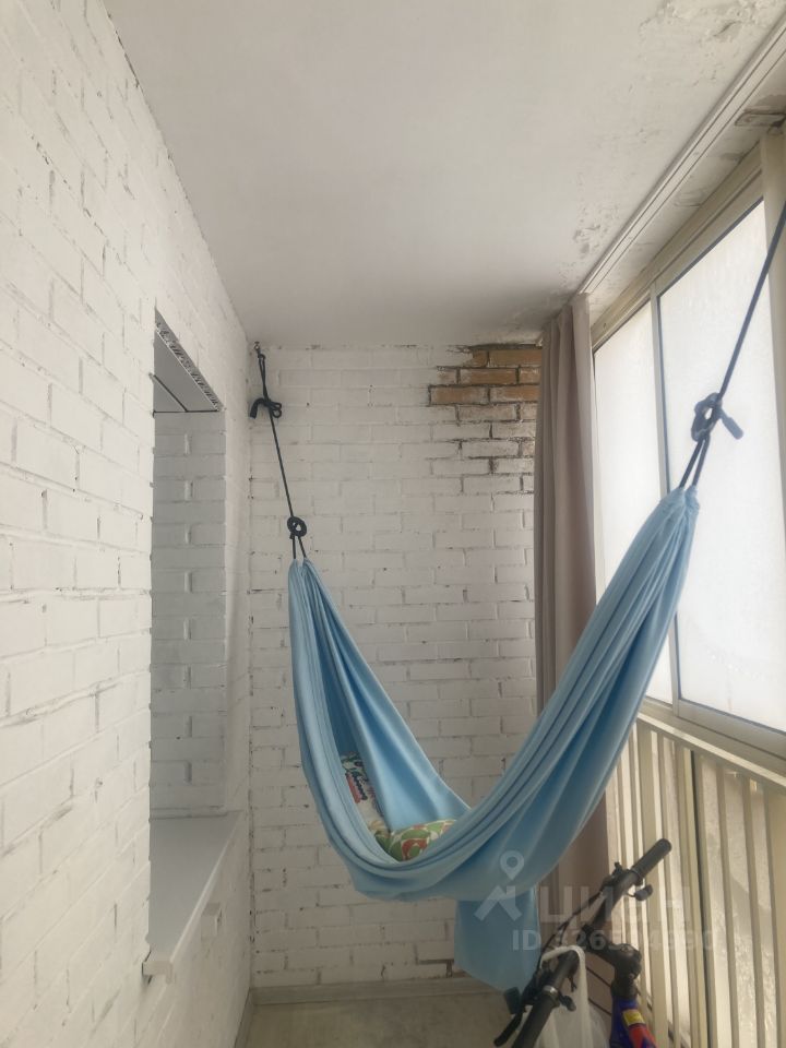 5. Просторная лоджия 5 м2 с блэкаут шторами, гамаком и видом на Енисей.