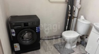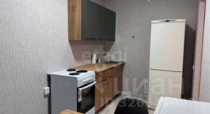 В квартире имеется: кухонный гарнитур, обеденный стол, стулья, микроволновка, чайник, холодильник, диван, шкаф, стиральная машинка.