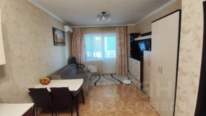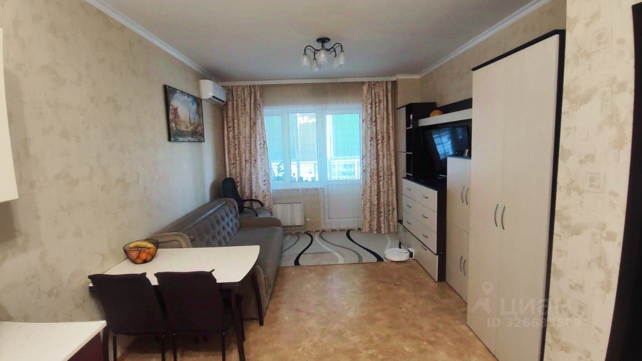 В квартире сделан косметический ремонт. Из мебели есть шкафы, спальных мест нет. На кухне имеется обеденный стол, холодильник, варочная панель, духовой шкаф, микроволновая печь и стиральная машина. В квартире установлен кондиционер.