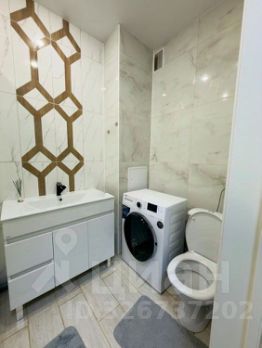 Ванная комната совмещённая, оформлена в светлых тонах с современной сантехникой. В прихожей предусмотрены удобные шкафы для хранения вещей.