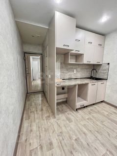 В квартире имеется только кухонный гарнитур и шкаф.