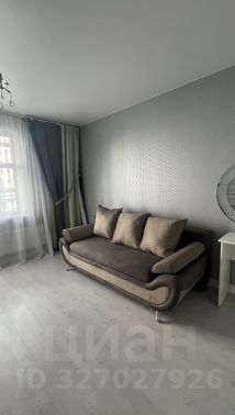 Квартира с балконом, комната 17 кв. м. с мебелью и кондиционером, отдельно: кухня со встроенной техникой (индукционная плита, духовка), холодильник.