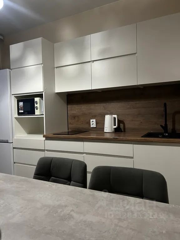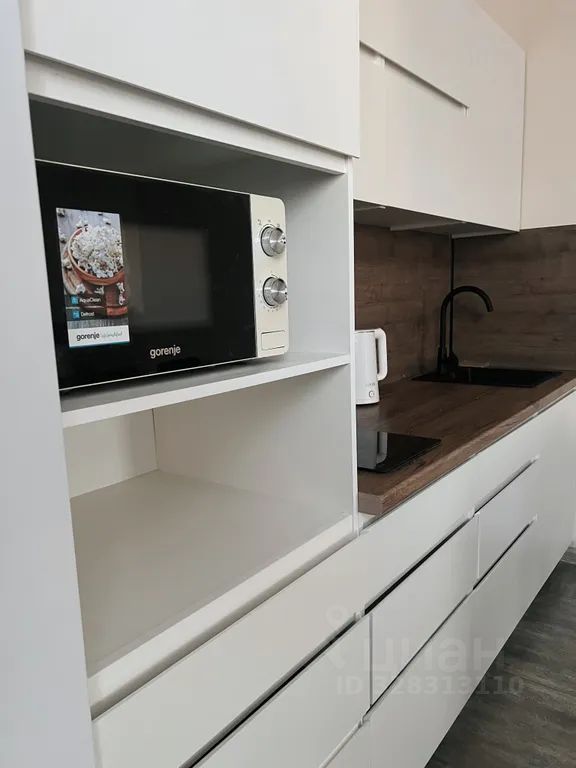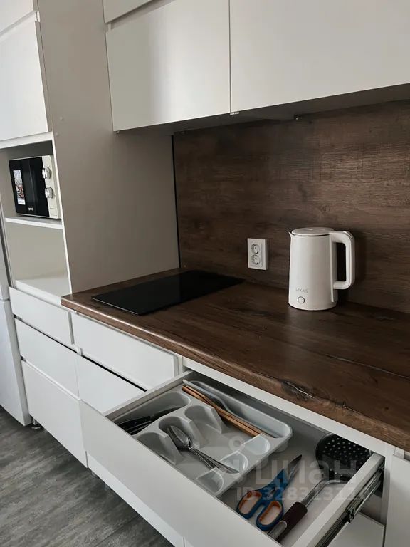 — холодильник, микроволновая печь, индукционная плита, чайник, набор посуды и столовых приборов;