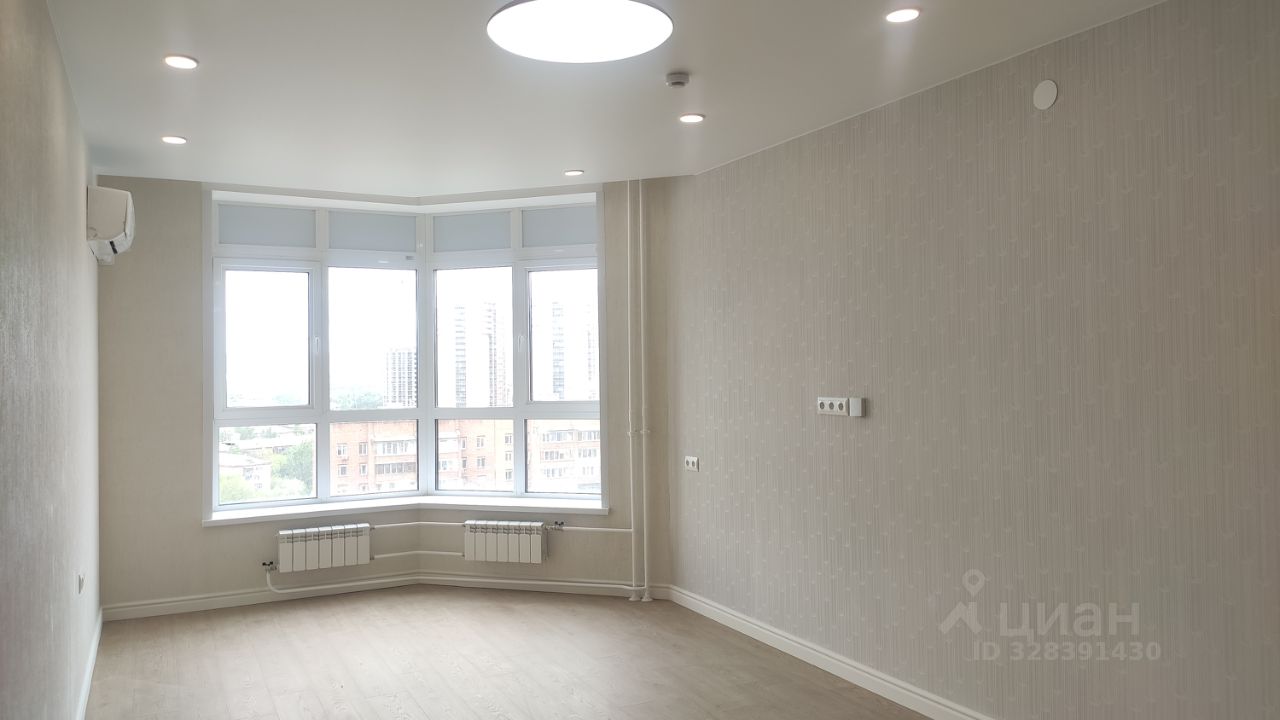 Эркерное окно, панорамный вид на город и Енисей, много света и пространства.