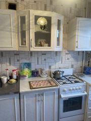 Есть вся необходимая мебель: 2-х спальная кровать, раскладной диван, кухонный гарнитур, комод, стол, стулья.