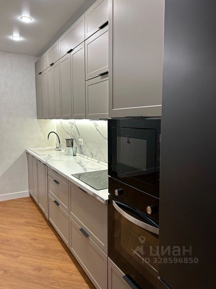 В кухне остается: кухонный гарнитур с каменной столешницей, варочная панель, духовой шкаф, посудомоечная машина, холодильник, микроволновая печь, кухонный стол , 4 стула, бризер (очиститель воздуха).